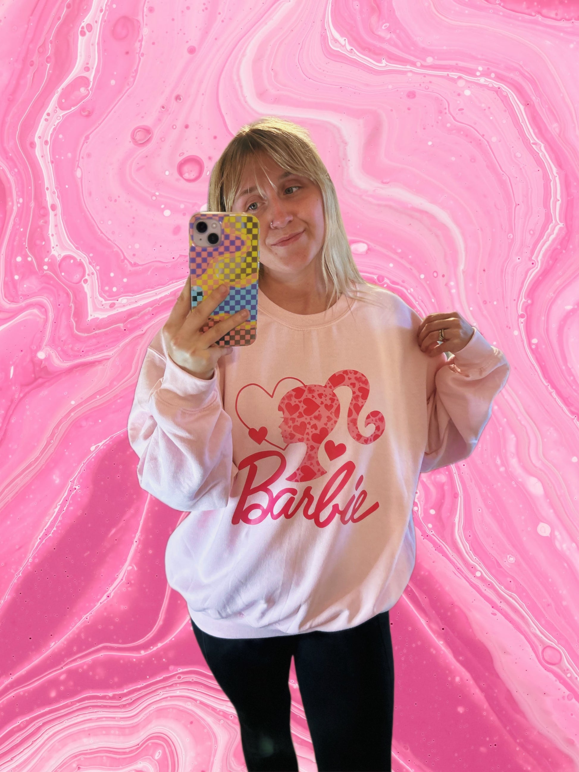 DTF PRINTED Light Pink Barbie Crewneck